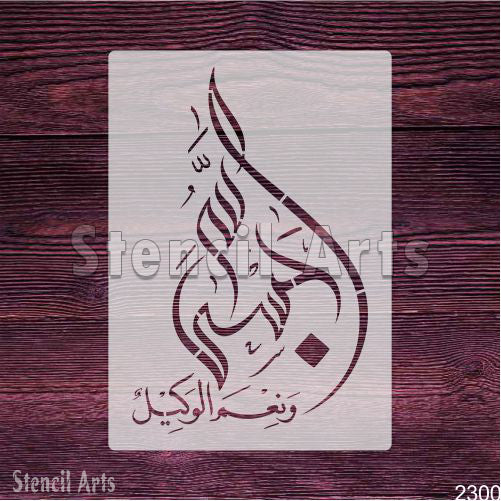 Hasbi Allahu Wa Ni’mal Wakeel Calligraphy Stencil – Islamic Arabic Stencil for Wall Art & Canvas